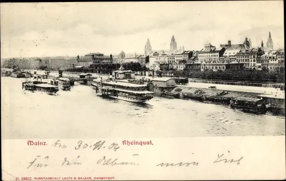 Ak Mainz am Rhein, Rheinquai, Dampfer