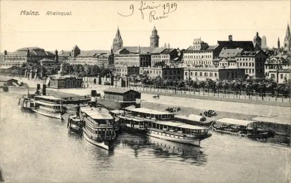 Ak Mainz am Rhein, Rheinquai, Dampfer
