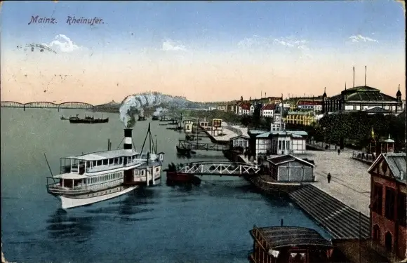 Ak Mainz am Rhein, Rheinufer, Dampfer