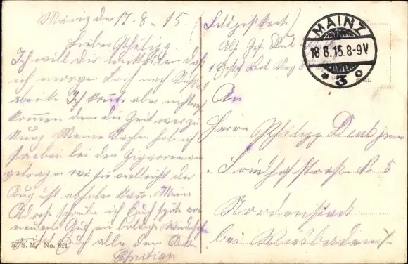 Zustand, siehe Scan, gelaufen, 1915 - ca 14 cm X 9 cm