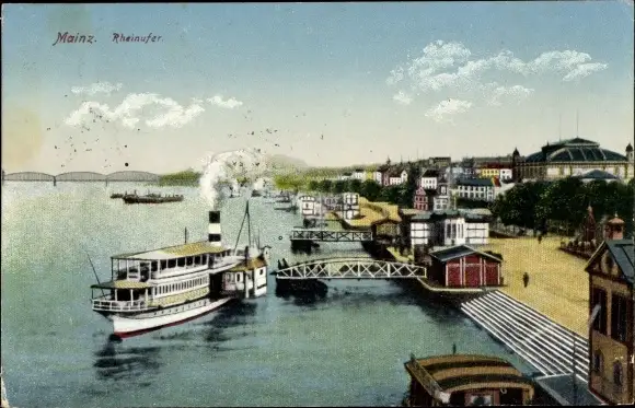 Ak Mainz am Rhein, Rheinufer, Dampfer
