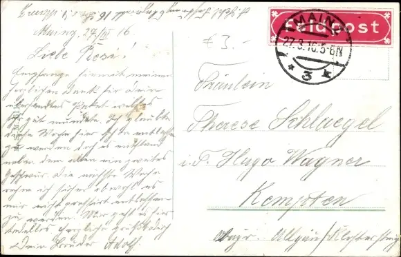 Zustand, siehe Scan, gelaufen, 1916 - ca 14 cm X 9 cm