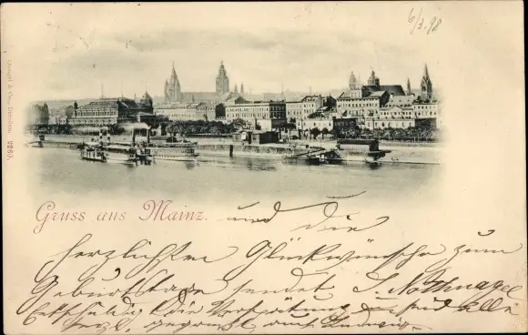 Ak Mainz am Rhein, Schiffe, Panorama, Kirche