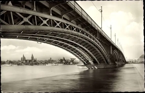 Ak Mainz am Rhein, Straßenbrücke mit Blick auf Dom