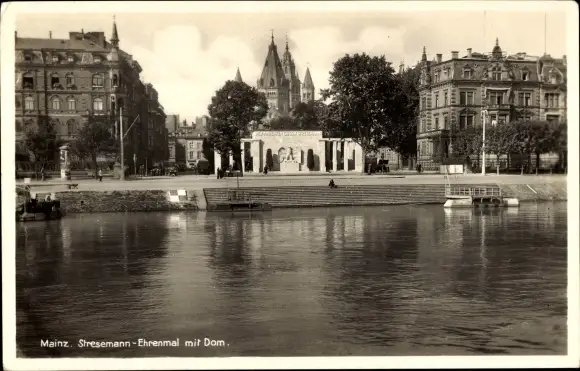 Ak Mainz am Rhein, Stresemann Ehrenmal und Dom