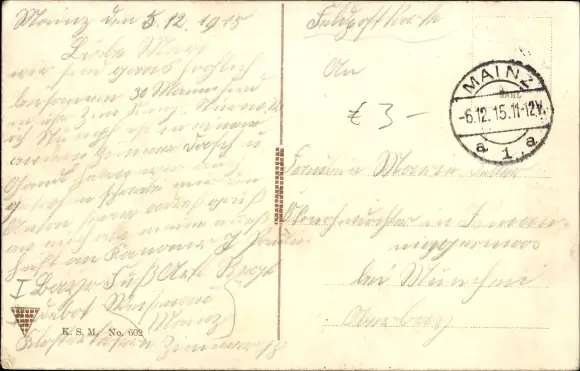 Zustand, siehe Scan, gelaufen, 1915 - ca 14 cm X 9 cm