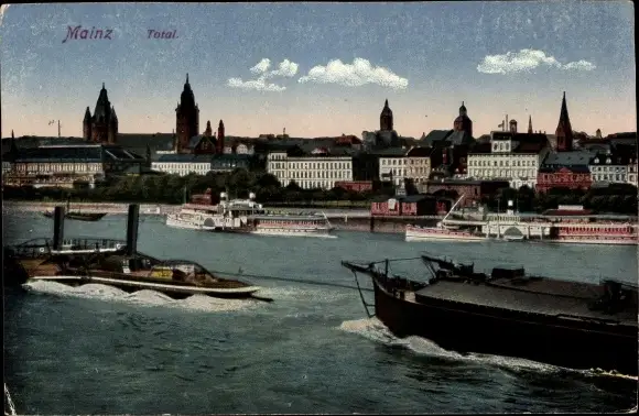 Ak Mainz am Rhein, Total, Schiffe, Schleppzug
