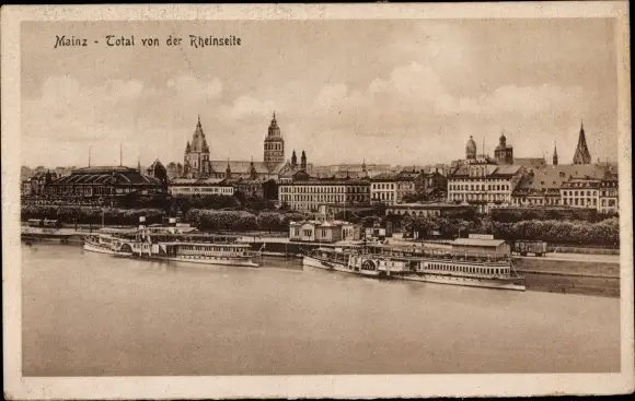 Ak Mainz am Rhein, Total von der Rheinseite, Schiffe