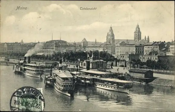 Ak Mainz am Rhein, Totalansicht, Dampfer