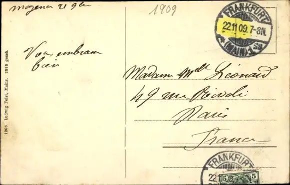Zustand, siehe Scan, gelaufen, 1909 - ca 14 cm X 9 cm