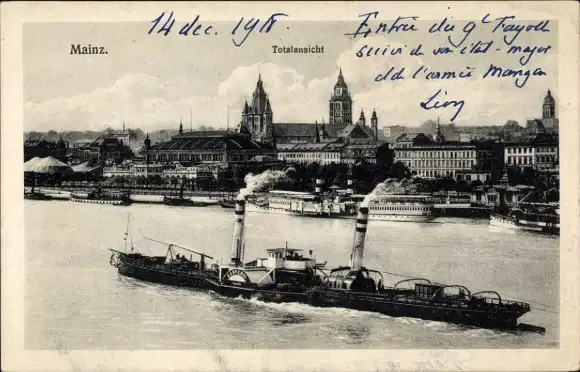 Ak Mainz am Rhein, Totalansicht, Dampfer, Türme