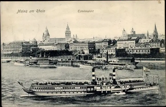 Ak Mainz am Rhein, Totalansicht, Rheindampfer