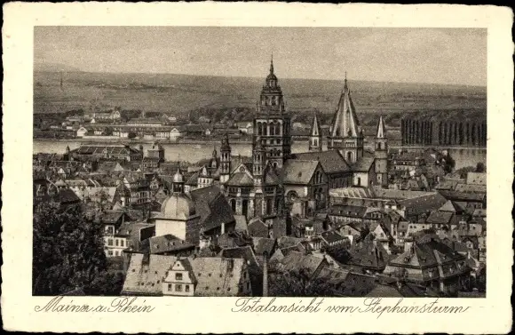 Ak Mainz am Rhein, Totalansicht, Stephansturm