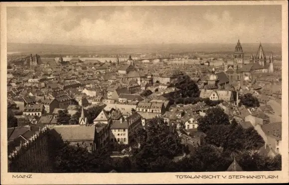 Ak Mainz am Rhein, Totalansicht vom Stephansturm