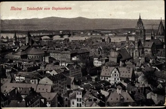 Ak Mainz am Rhein, Totalansicht vom Stephansturm