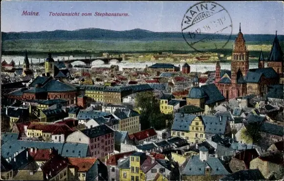 Ak Mainz am Rhein, Totalansicht vom Stephansturm