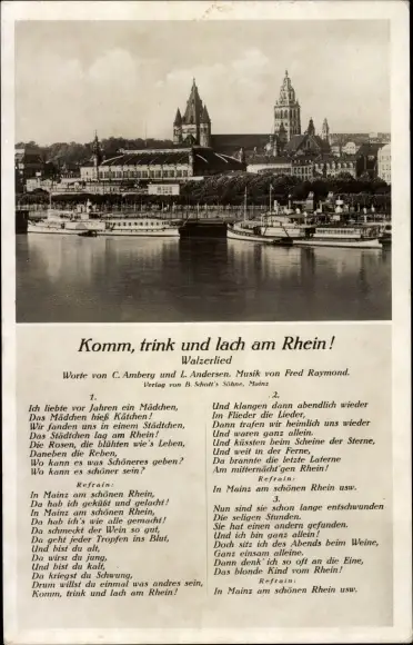 Ak Mainz am Rhein, Uferpartie, Schiffe, Walzerlied