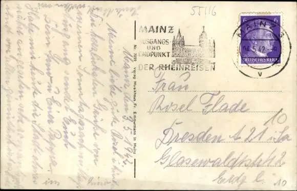 Zustand, siehe Scan, gelaufen, 1942 - ca 9 cm X 14 cm