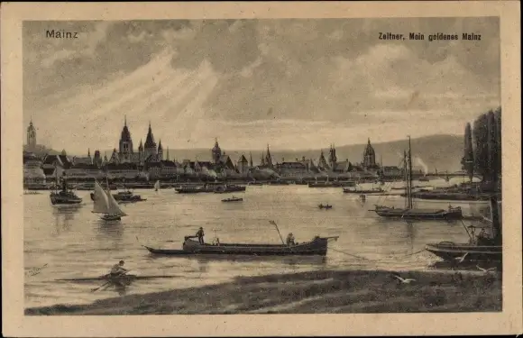 Ak Mainz am Rhein, Zeltner, Rheinpartie, Schiffe
