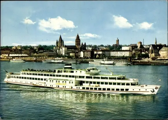 Ak Mainz in Rheinland Pfalz, MS Loreley mit Blick auf den Ort