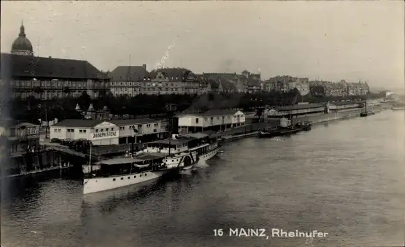 Ak Mainz in Rheinland Pfalz, Rheinufer, Rheindampfer
