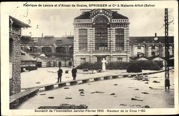 Ak Maisons Alfort Val de Marne, Fabrique de Levure et d´Alcool de Grains, Inondation Janvier 1910