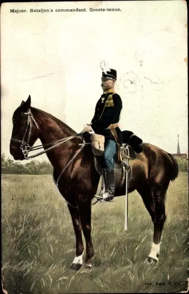 Ak Majoor. Bastaljon's commandant, Groote tenue, Niederländischer Heerführer zu Pferde