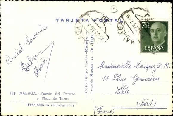 Ak Málaga Andalusien Spanien, Fuente del Parque, Plaza de Toros