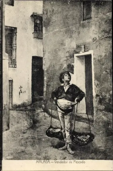 Ak Málaga Andalusien Spanien, Vendedor de Pescado