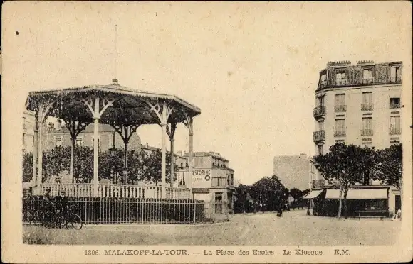 Ak Malakoff la Tour Hauts de Seine, La Place des Ecoles, Le Kiosque