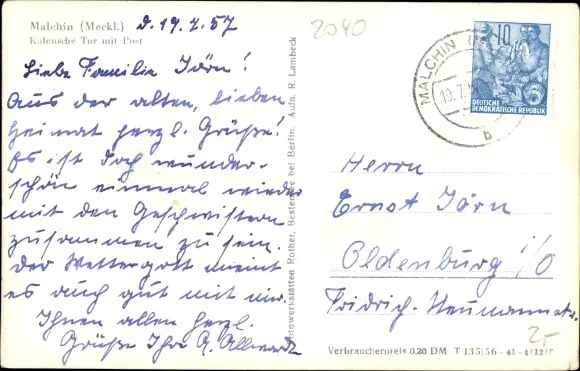 Ak Malchin in Mecklenburg, Kalensches Tor mit Post