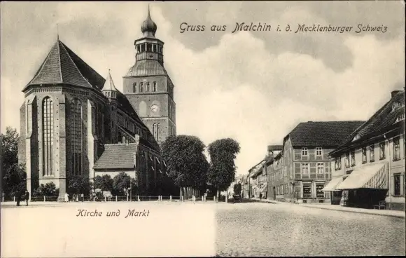 Ak Malchin in Mecklenburg, Kirche, Markt