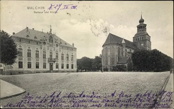 Ak Malchin in Mecklenburg, Rathaus, Kirche