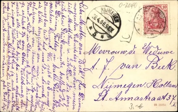 Zustand, siehe Scan, gelaufen, 1908 - ca 14 cm X 9 cm