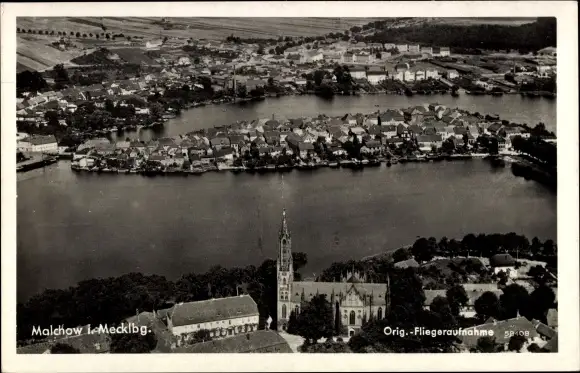 Ak Malchow in Mecklenburg, Fliegeraufnahme, Kirche