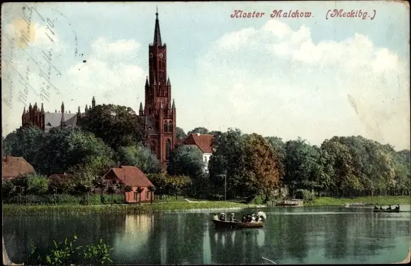 Ak Malchow in Mecklenburg, Kloster, Gewässer, Ruderboote
