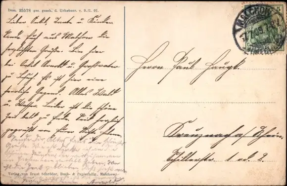 Zustand, siehe Scan, gelaufen, 1909 - ca 14 cm X 9 cm
