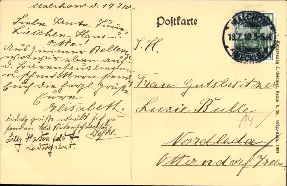 Zustand, siehe Scan, gelaufen, 1910 - ca 14 cm X 9 cm