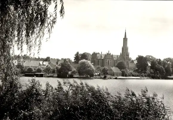 Ak Malchow in Mecklenburg, Teilansicht, Blick über See, Kirchturm