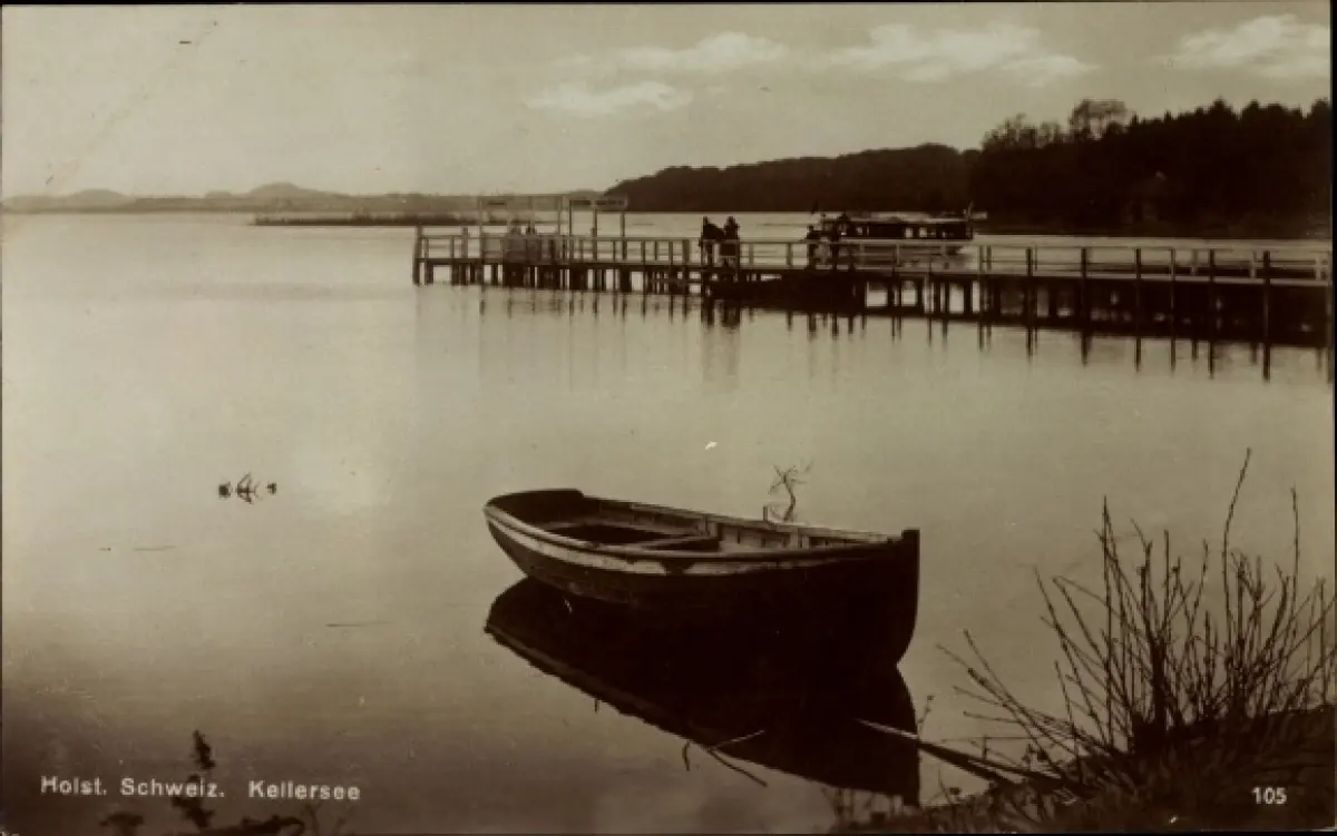 Ak Malente in Ostholstein, Kellersee, Boot, Seebrücke