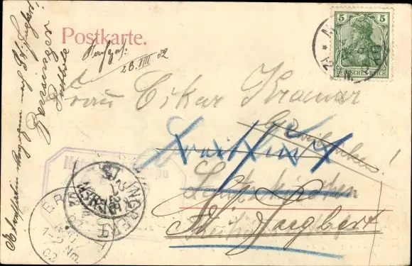 Zustand, siehe Scan, gelaufen, 1902 - ca 14 cm X 9 cm