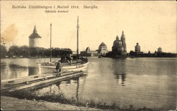 Ak Malmö Schweden, Baltiska Utställningen 1914, Storsjön, Segelschiff