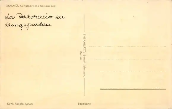 Ak Malmö Schweden, Kungsparkens Restaurang