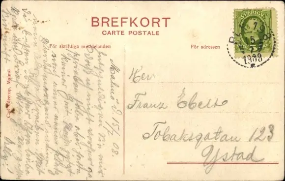 gelaufen 1908, Eckknick links oben, Ecken bestoßen, sonst guter Zustand