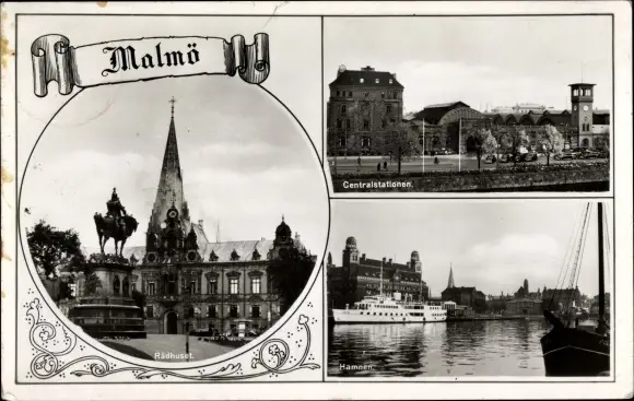 Ak Malmö Schweden, Radhuset, Centralstationen, Hamnen
