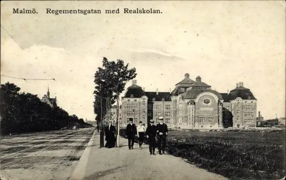 Ak Malmö Schweden, Regementsgatan med Realskolan, Stadtansicht