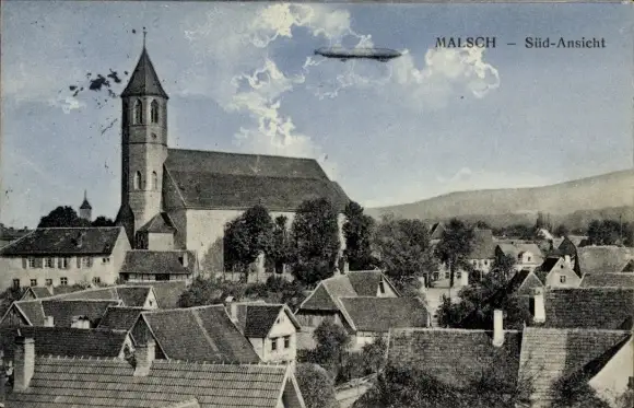 Ak Malsch in Baden, Südansicht, Zeppelin