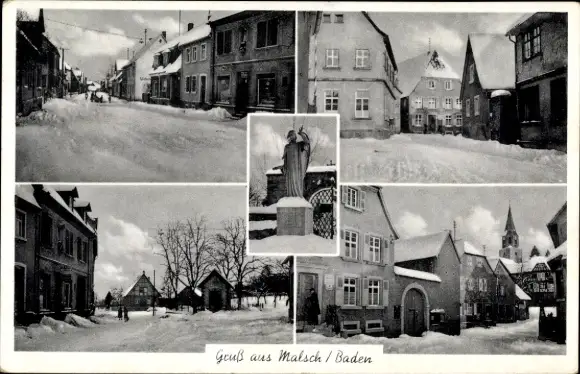 Ak Malsch in Baden, Teilansichten, Winter