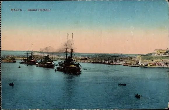 Ak Malta, Grand Harbour, Kriegsschiffe