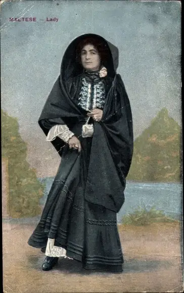 Ak Malta, Maltese Lady, Frau in maltesischer Tracht